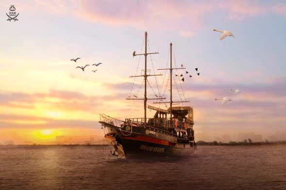 A real pirate ship will be waiting for us at the pier, the boat on which we'll sail the Dubai Canal. We'll settle into our seats and begin the two-hour ride along the banks of the canal.