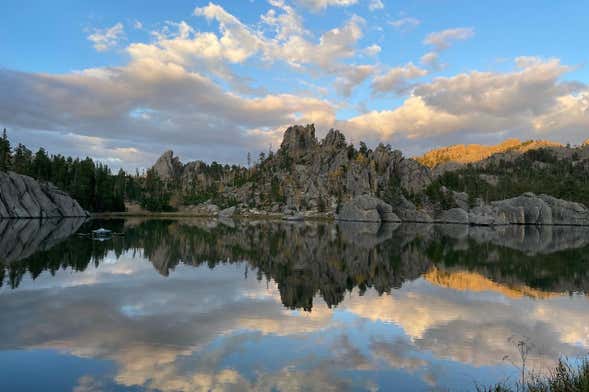 Our journey continues along the Wildlife Loop Road, a picturesque road offering sweeping mountain views and lush greenery. The panoramic view continues with our passage along the Needles Highway, where pine and spruce forests, meadows enveloped in birch and aspen, and rugged granite peaks go on for miles. We'll pause at the famous Sylvan Lake, formed in 1891 as a result of a nearby dam.