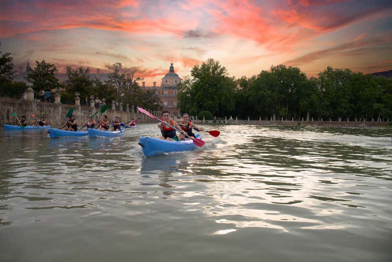 Con las nociones básicas aprendidas, arrancaremos esta ruta en kayak por el Tajo a su paso por Aranjuez, en la que veremos sus tesoros arquitectónicos desde el agua. Partiremos en dirección al Palacio Real, declarado Patrimonio de la Humanidad por la Unesco.