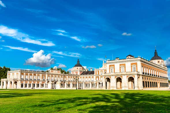 En primer lugar, contemplaremos la fachada del Palacio Real de Aranjuez, una auténtica joya arquitectónica situada a orillas del río Tajo. Aunque no accederemos al interior del palacio, conoceremos la historia de este Real Sitio, en el que los monarcas españoles solían pasar la temporada de primavera. A continuación, pasaremos junto a las Casas de Oficios y Caballeros situadas junto al palacio.