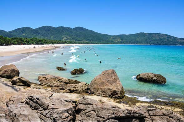 A continuación, dejaremos atrás Río de Janeiro y seguiremos el trayecto rumbo oeste hacia Conceição de Jacareí. Al llegar a esta localidad costera, nos dirigiremos al muelle de la Marina Porto Real. En este puerto subiremos a bordo de una lancha rápida que nos llevará hasta el embarcadero de Vila do Abraão, la capital de Ilha Grande.
