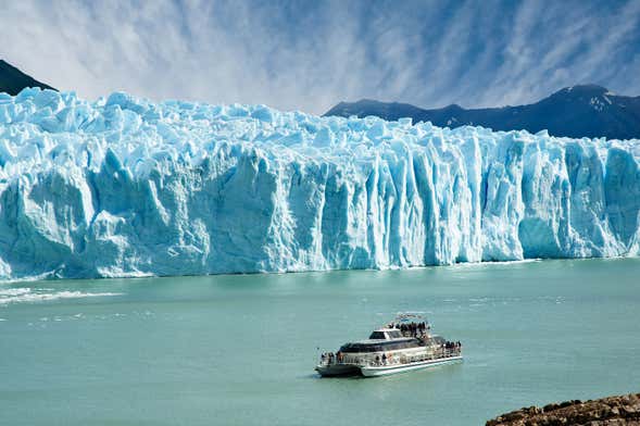 Nos encontraremos a la hora acordada en el Puerto Bajo Las Sombras, en las inmediaciones del Canal de los Témpanos, dentro del Parque Nacional de los Glaciares. Una vez nos reunamos con un guía profesional, subiremos a bordo para comenzar nuestro paseo en barco por el glaciar Perito Moreno.
