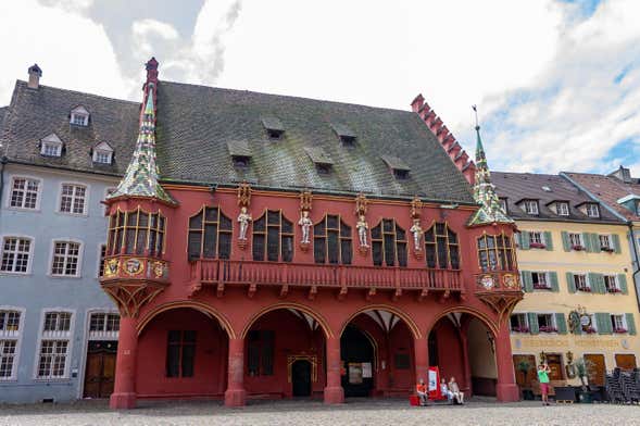 Descubriremos por qué esta vivienda se denomina de una forma tan singular y, a continuación, iremos hasta la Münsterplatz para contemplar la imponente fachada gótica de la catedral de Friburgo. A los pies del templo observaremos otra de las grandes joyas de la ciudad: el gran almacén histórico del Historisches Kaufhaus, que destaca por su llamativa tonalidad rojiza.