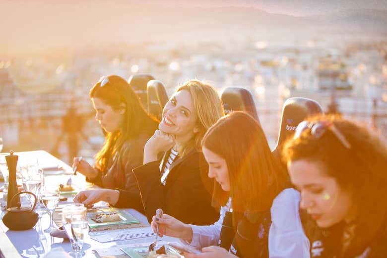 Una vez reunidos, tomaréis asiento y una mesa comenzará a suspenderse por encima del suelo para que los comensales podáis degustar la comida o cena, según el horario que elijáis. ¿Qué os parecen las vistas de las montañas del Atlas?