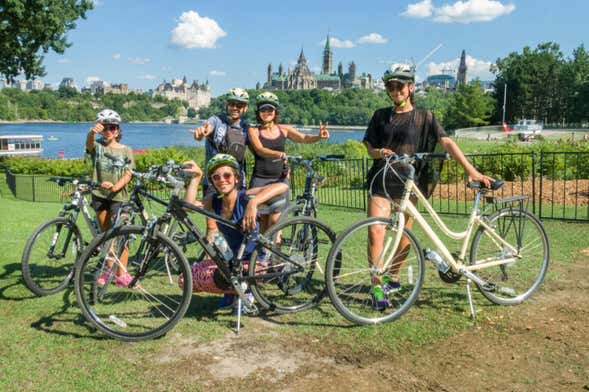 A la hora seleccionada, nos encontraremos en el número 65 de Sparks St. de Ottawa. Una vez estemos todos reunidos, nos subiremos a las bicicletas para pedalear en busca de algunos de los lugares más emblemáticos de la ciudad.