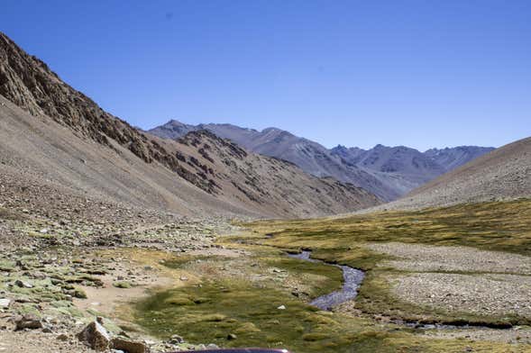 Cuando ya tengamos todo preparado, almorzaremos y emprenderemos una emocionante ruta de trekking por la Quebrada Amarilla. En esta caminata, en la que recorreremos entre 3 y 4 kilómetros, atravesaremos una preciosa zona de prístinos valles donde veremos la majestuosidad de la cordillera Altoandina de Chile.