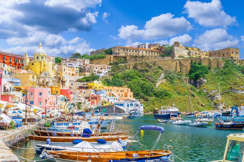A la hora indicada nos reuniremos en el puerto de Procida, desde donde comenzaremos nuestro tour privado por esta encantadora isla del Golfo de Nápoles. ¿Preparados? ¡Os enamorará!