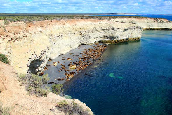 Una vez lleguemos al espacio natural protegido nos acercaremos hasta las inmediaciones del litoral para observar desde un mirador a los lobos marinos que habitan en este rincón costero de la provincia argentina de Chubut.