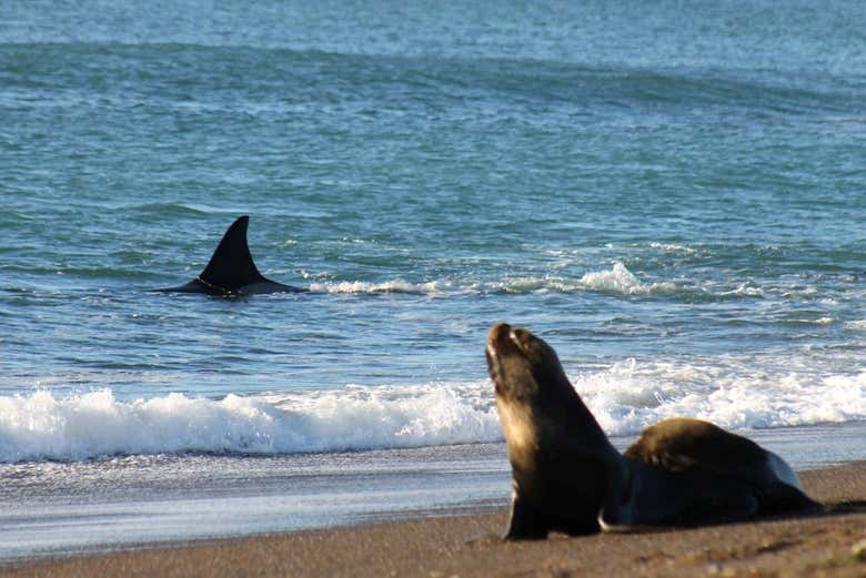 Si tenemos suerte, veremos cómo se lanzan sobre la playa para atrapar las crías de los lobos marinos. ¡Seréis testigos de una escena que solo ocurre en contados lugares del planeta! Durante el tiempo de espera, podremos además avistar aves marinas y otras especies que habitan en la zona.
