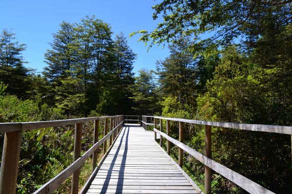 Seguidamente nos acercaremos al monumento natural Lahuen Ñadi. Recorreremos este bonito bosque de alerces admirando su flora y avistando diferentes aves como el carpintero negro o el hued hued y mamíferos como el pudú o el zorro gris. ¡No pararéis de hacer fotos!