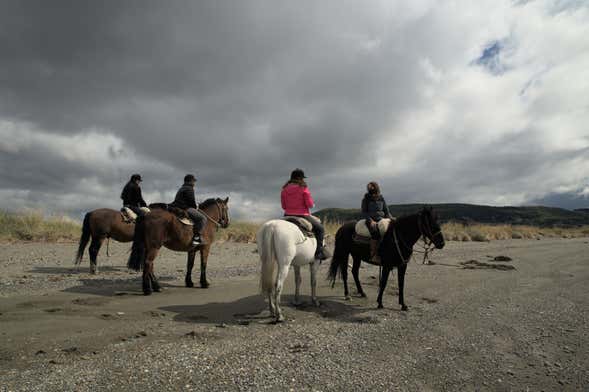 Durante el paseo a caballo, alcanzaremos un mirador con vistas al estrecho de Magallanes y a la isla Grande de Tierra del Fuego. ¡No podréis parar de hacer fotos! Posteriormente, realizaremos el descenso hasta llegar de nuevo a la bahía. Os sorprenderán los caminos llenos de vegetación y las explanadas por las que pasaremos.