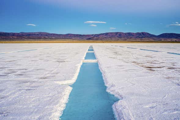 Alcanzaremos los 4150 metros sobre el nivel del mar, punto donde se ubican las Salinas Grandes. ¿Sabíais que es el tercer salar más grande de Sudamérica? Esta gigantesca llanura crea un paisaje precioso, gracias al contraste del azul del cielo con el color blanco de la sal.