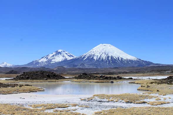 A la hora indicada, os recogeremos en vuestro hotel de Putre y nos desplazaremos hacia las cuevas situadas en las afueras de la localidad. Tras una breve caminata junto a las grutas, iremos al mirador de Chucuyo para contemplar los hermosos paisajes del Parque Nacional Lauca, cuyas lagunas y volcanes se extienden sobre el altiplano andino del norte de Chile.