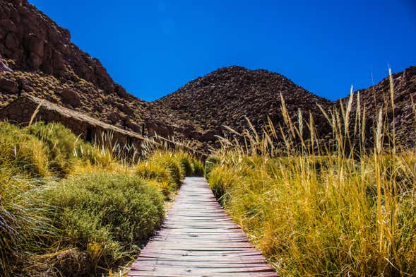 El lugar está equipado con pasarelas de madera que conectan las ocho piscinas naturales e instalaciones como baños y merenderos para que podáis despreocuparos y disfrutar de las propiedades relajantes de las aguas termales de Puritama.