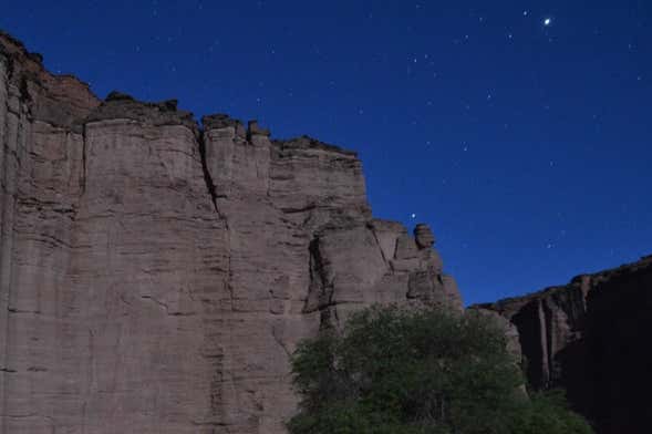 Comenzaremos este tour nocturno por el Parque Nacional de Talampaya contemplando sus gigantescos farallones. ¡Alcanzan los 170 metros de altura! El reflejo de la luna se proyecta en estas piedras rojizas de arenisca, creando unas bonitas estampas que podréis inmortalizar para el recuerdo.