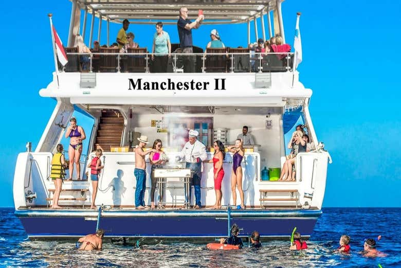 Pendant que vous naviguerez dans cette région de la mer Rouge, vous pourrez prendre des photos depuis le pont du bateau et vous détendre dans les solariums, qui sont parfaits pour prendre un bain de soleil. Vous ferez votre premier arrêt dans une zone de récifs, où vous aurez une heure de libre pour nager et faire du snorkeling.