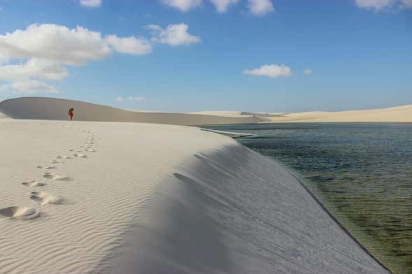 Vous traverserez la rivière en ferry jusqu'au parc national Lençóis Maranhenses où vous commencerez le parcours de randonnée. Pendant sept heures, vous marcherez à travers de magnifiques sentiers et de vastes dunes de sable jusqu'au village de Baixa Grande, où vous ferez la connaissance d’une famille locale chez qui vous passerez la nuit.