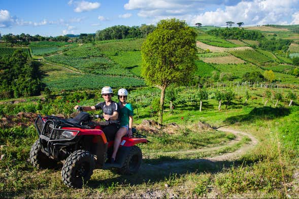 Vous conduirez les quads le long des paysages fascinants de la Vale dos Vinhedos, en traversant les vignobles et en découvrant toutes les caractéristiques de cette région viticole brésilienne. De plus, tout au long de l'excursion, vous vivrez des sensations fortes en conduisant ces véhicules amusants.
