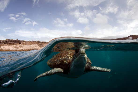 Vous verrez comment les tortues caouannes et les tortues vertes nagent paisiblement. Saviez-vous qu'elles peuvent atteindre plus d'un mètre de long ? Vous le découvrirez par vous-même.