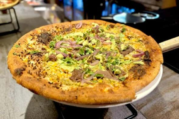 Vous longerez également le Paseo del Río, où vous dégusterez une part de pizza avec des côtes au barbecue, de la sauge frite, de l’oignon rouge et une délicieuse sauce crémeuse au fromage bleu. Vous allez adorer !