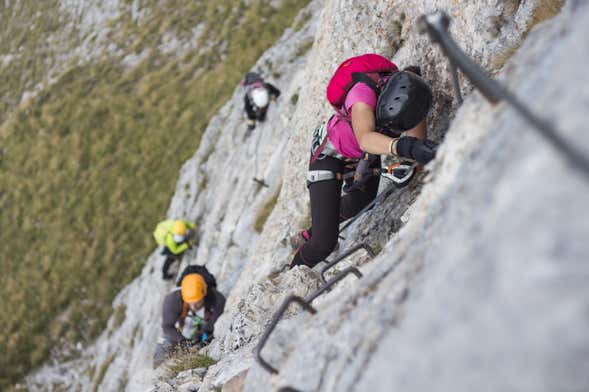 Dopo aver sistemato le imbracature, i caschi e il resto dell'equipaggiamento di sicurezza, ascolteremo una breve introduzione tecnica sul percorso, quindi, una volta pronti, inizieremo a camminare lungo la via ferrata. Che siate esperti o meno, vivrete un'esperienza davvero unica!