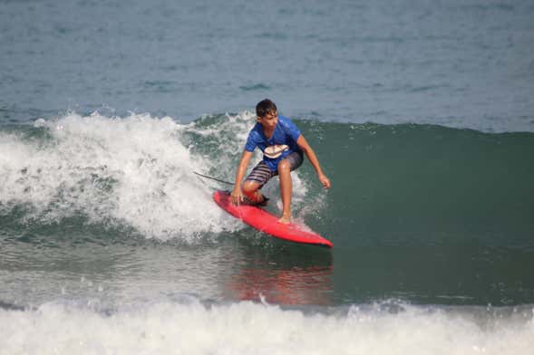 Dopo la spiegazione, è giunto il momento di fare surf! In mare, ci eserciteremo a stare in piedi sull'acqua, a pagaiare fino a raggiungere l'onda e a mantenere l'equilibrio. Il tutto mentre ci divertiamo a cavalcare le onde!