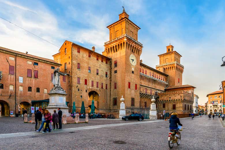 Il tour partirà dal cortile del Castello Estense, che potremo ammirare dall'esterno. Simbolo della città per eccellenza, fu costruito come fortezza e poi trasformato nella residenza ducale degli Este: le altane, i balconi e le imponenti torri ci raccontano della grandezza del suo passato.