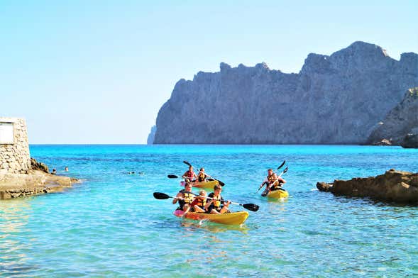 Una volta sui kayak, remeremo nella spettacolare baia di Cala Sant Vicenç, raggiungendo gli angoli più incontaminati della costa di Pollensa. Navigheremo tra gli scogli, entreremo in alcune grotte e passeremo sotto imponenti scogliere di oltre 300 metri di altezza.