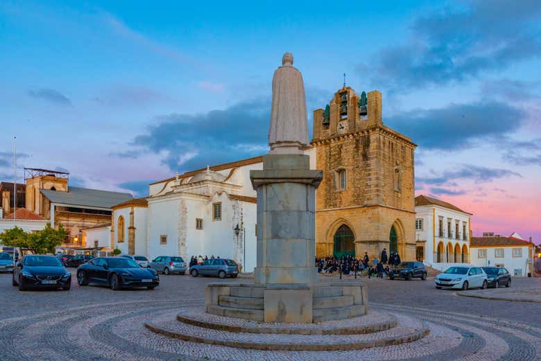 Primeiramente, visitaremos o centro murado de Faro, capital do Algarve. Suas ruas de paralelepípedos levam a várias praças. A maior delas é o Largo da Sé, a praça da Catedral de Faro. Este impressionante templo se destaca por sua fachada de pedra e sua torre medieval, que oferece belas vistas da cidade.