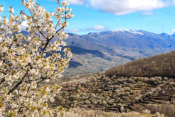 Na nossa rota, iremos ao cativador entorno das cerejeiras do Valle del Jerte. Sua floração na primavera são um espetáculo para os sentidos, pois à suave fragrância das suas pétalas junta-se o tom branco das suas flores. E se além disso consideramos o delicioso sabor da cereja estremenha, temos uma combinação perfeita. O Valle se veste de gala entre março e abril, o período ideal para nos deleitarmos com as suas maravilhas naturais.