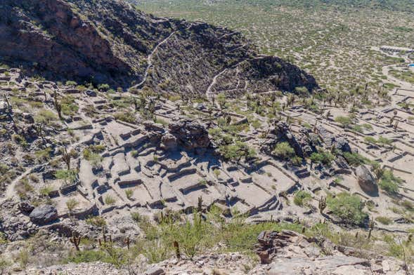 Depois de conhecer o museu, começaremos uma visita guiada pelo sítio arqueológico. Acompanhados pelo guia, passaremos pelas ruínas observando as casas de pedra, sua região de cultivo e suas extensas muralhas. Além disso, dos mirantes do recinto poderemos contemplar com perfeição o antigo assentamento rodeado pelas áridas montanhas e numerosos cactos de uma espécie conhecida localmente como cardón.