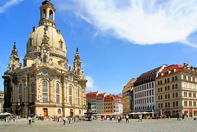 Nos encontraremos na hora indicada em Theaterplatz. Desta praça central, começaremos a nossa visita guiada por Dresden. Um dos seus edifícios mais emblemáticos é a famosa igreja de Nossa Senhora, à qual os alemães chamam de Frauenkirche. Esta é uma das representações barrocas mais importantes do luteranismo na Europa.