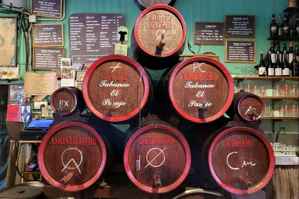 Sem dúvida, o vinho é uma das principais marcas de identidade de Jerez de la Frontera. Se você quer conhecer todos os seus segredos, na hora indicada, no encontraremos na entrada do tabanco El Pasaje, em pleno centro da cidade.