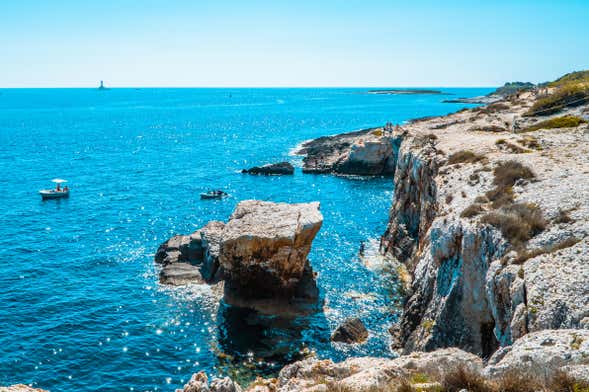 Depois de 50 minutos navegando, chegaremos ao ponto mais ao sul da Ístria, mais especificamente ao Cabo de Kamenjak, um autêntico paraíso. Do barco veremos os desfiladeiros banhados pelas águas azuis-turquesa, além das grutas marinhas dessa zona.