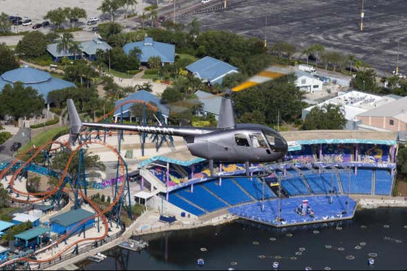 Neste passeio de helicóptero, percorreremos aproximadamente 48 quilômetros de Orlando e os seus parques. Durante o voo, de 20 minutos, você verá todos os parques temáticos da cidade, incluindo Gatorland, SeaWorld, Aquatic, Discovery Cove, Universal Studios, Island of Adventures e Volcano Bay.