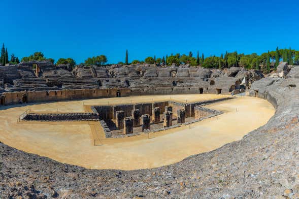 Nos encontraremos na hora indicada às portas das ruínas de Itálica, situadas em Santiponce, uma pequena cidade localizada a cerca de dez minutos de Sevilha. Entraremos nesse importante conjunto arqueológico, cidade natal de Trajano, e conheceremos cada uma de suas histórias.