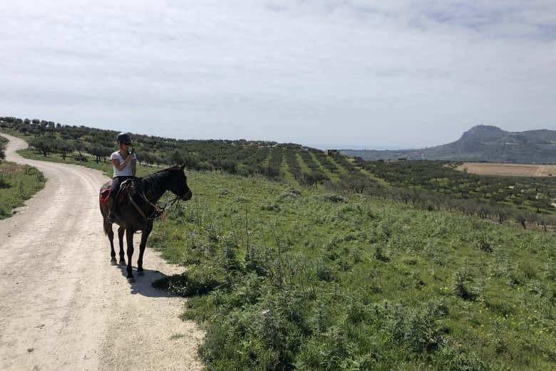 Uma vez na sela, cavalgaremos por caminhos que serpenteiam entre árvores centenárias e oliveiras, cujos galhos retorcidos contam histórias antigas de tempos passados. A paisagem, caracterizada por cores vivas e aromas mediterrâneos, nos proporcionará vistas de tirar o fôlego e uma sensação de conexão com a natureza. Uma experiência única!